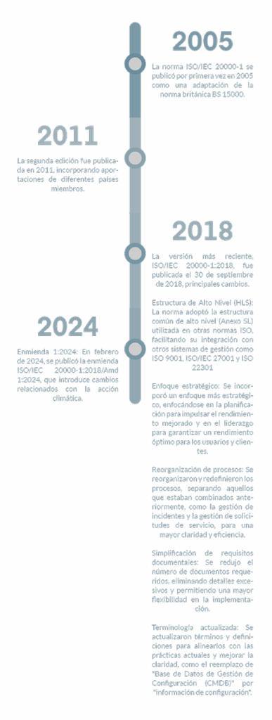 La norma ISO/IEC 20000-1 especifica los requisitos para que una organización establezca, implemente, mantenga y mejore continuamente un sistema de gestión de servicios (SMS).